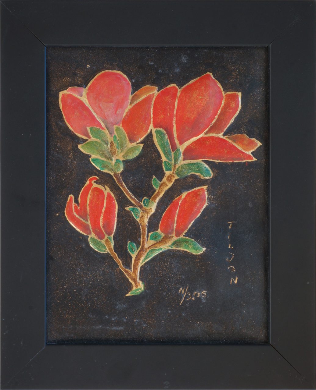 Facebook Twitter LinkedIn Reddit Pinterest March 11, 2006October 2, 2021 Gold leather flower by randi No Comments on Gold leather flower Golden Leather Golden leather flowers. I glue gold to protruded leather and paint it. This was from a template, and given to my son in 2006.