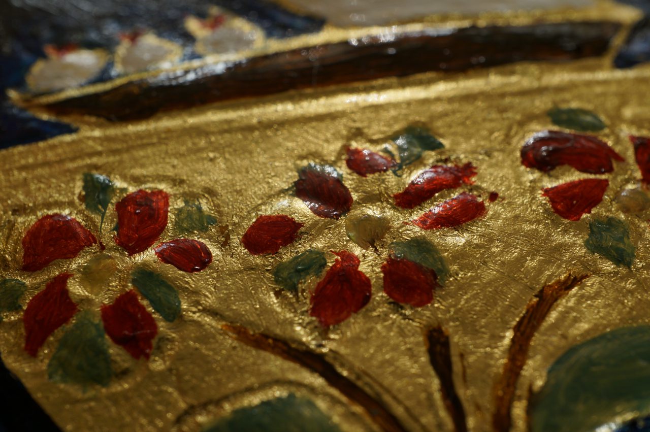 June 22, 2020October 2, 2021 Golden leather flowers on blue background by randi Comments Off on Golden leather flowers on blue background